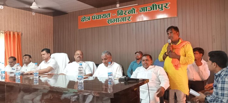 गाजीपुर बिरनो स्थित ब्लाक मुख्यालय परिसर में आज क्षेत्र पंचायत सदस्य और ग्राम प्रधानों की संयुक्त मासिक बैठक आयोजित की गई। इसमें बाल विकास, स्वास्थ्य विभाग, शिक्षा सहित अन्य विभाग के कर्मचारी और अधिकारियों ने भाग लिया।