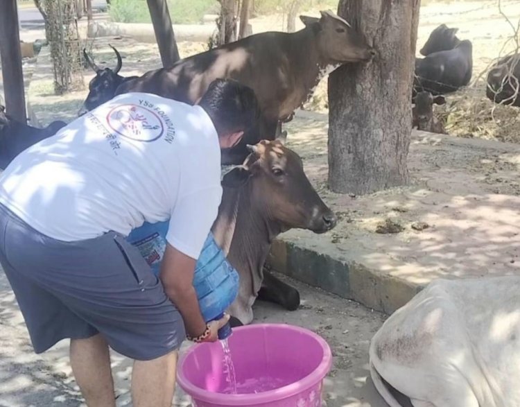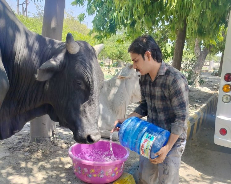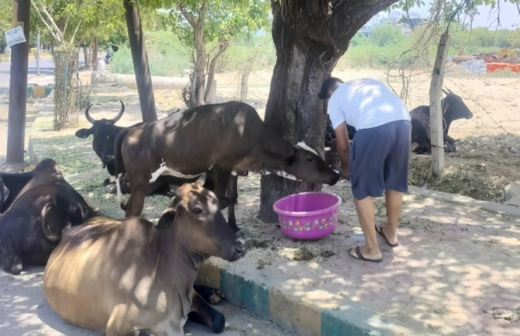 युवा शक्ति द्वारा गायों और जानवरों को कड़ी गर्मी में चारा और पानी का वितरण: एक पहल
