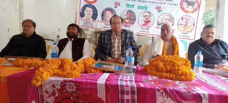 गाजीपुर उत्तर प्रदेश चतुर्थ श्रेणी राज्य कर्मचारी संघ पशुपालन विभाग द्वारा पशु चिकित्सालय सदर गाजीपुर पर सेवानिवृत्त हुए कर्मचारी का सम्मान समारोह आयोजन किया गया था, जिसमें राज्य कर्मचारी संयुक्त परिषद के जिलाध्यक्ष दुर्गेश कुमार श्रीवास्तव मुख्य अतिथि बतौर उपस्थित रहे, सेवानिवृत्त हुए कर्मचारी सोमनाथ रावत को राज्य कर्मचारी संयुक्त परिषद के जिलाध्यक्ष द्वारा रामचरितमानस पुस्तक, स्मृति चिन्ह, आदि,देकर सम्मानित किया गया, और मंच पर बैठे मुख्य पशु चिकित्सा अधिकारी गाजीपुर से मांग किया गया कि सेवानिवृत्त हुए कर्मचारी का संपूर्ण देयक भुगतान किया जाए, मंच पर उपस्थित मुख्य पशु चिकित्सा अधिकारी गाजीपुर द्वारा अस्वस्थ किया गया कि सेवानिवृत्त हुए कर्मचारी का समस्त देयक भुगतान एक सप्ताह के अंदर कर दिया जाएगा, उत्तर प्रदेश चतुर्थ श्रेणी कर्मचारी संघ के अध्यक्ष द्वारा सेवानिवृत हुए कर्मचारी को अंगवस्त्र भेट कर सम्मानित किया गया,और सम्मान समारोह में आए सभी पदाधिकारी,अधिकारी व सदस्यों के प्रति आभार व्यक्त किया गया ।