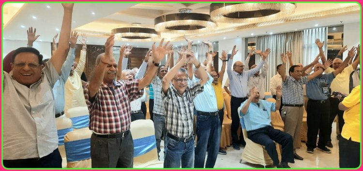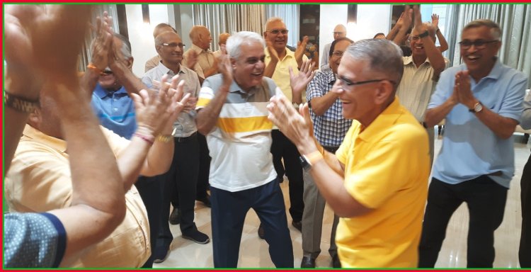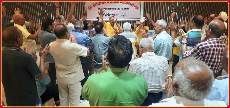 सीनियर सिटीजन एसोसिएशन ऑफ महागुन मॉडर्न सोसाइटी के 60 सदस्यो के साथ हंसी योग की शुरुआत की