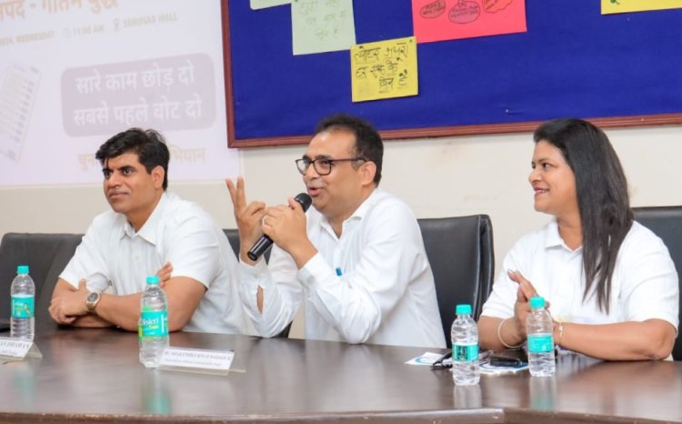 स्वीप कार्यक्रम के तहत सहायक प्रभारी अधिकारी/जिला समाज कल्याण अधिकारी शैलेंद्र बहादुर सिंह एवं उनकी टीम द्वारा आज इंस्टीट्यूट ऑफ मैनेजमेंट स्टडीज (आईएमएस) नोएडा सेक्टर 62 के परिसर में मतदाता जागरूकता कार्यक्रम आयोजित किया गया। स्वीप कार्यक्रम के तहत छात्रों को मतदान के लिए जागरूक किया गया एवं छात्रों को ईवीएम व वीवीपैट मशीन के इस्तेमाल के बारे में बताया गया।